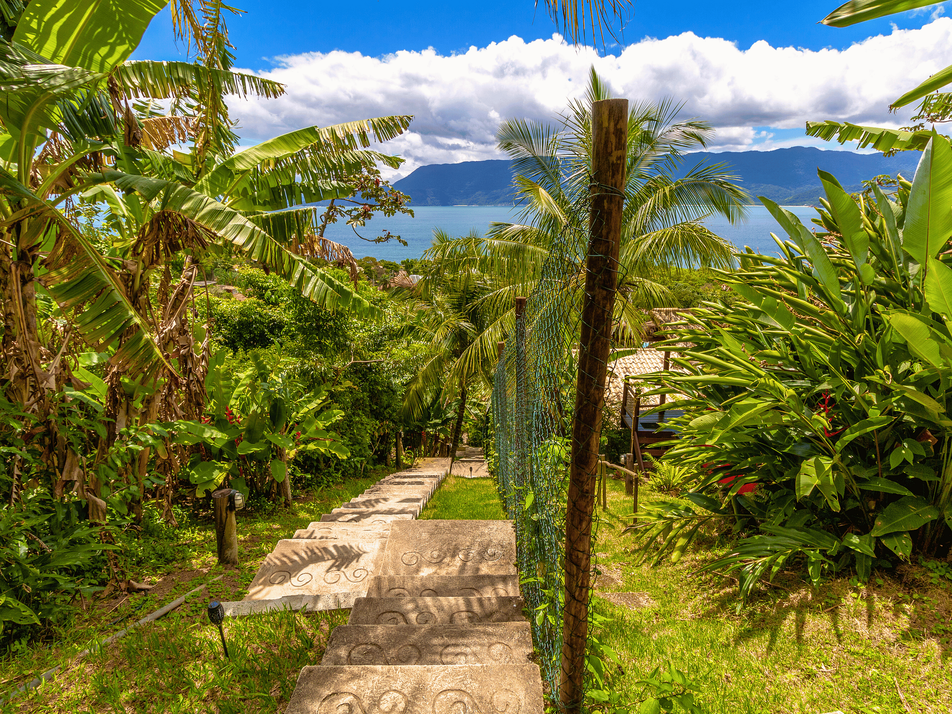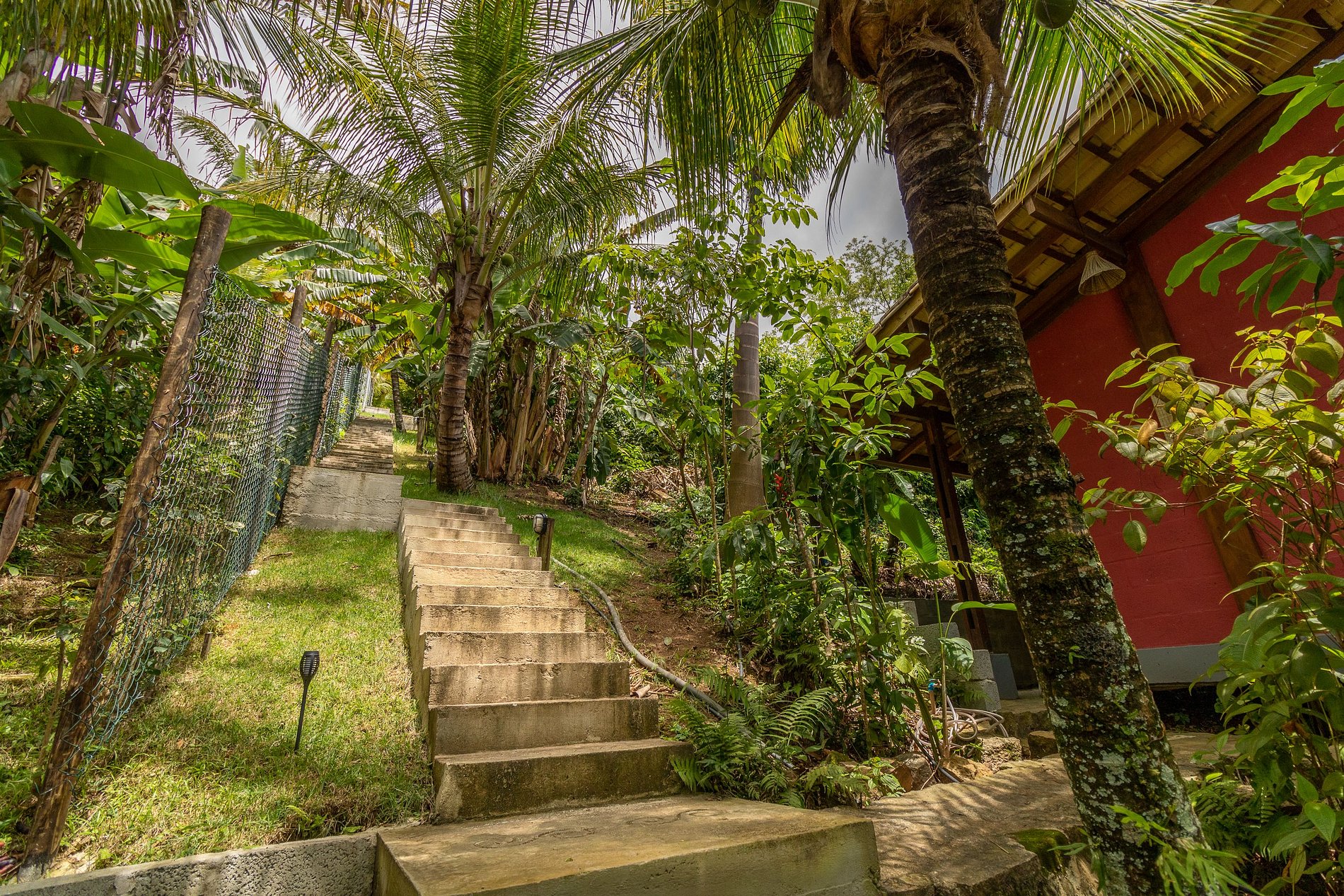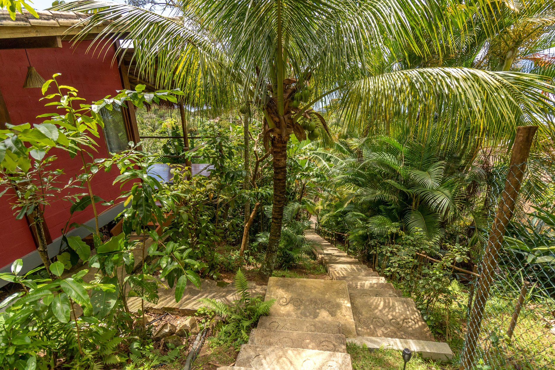 • Bangalô acessado por escadaria desde o estacionamento.